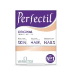 ویتامین B3 ی موجود در قرص پرفکتیل اورجینال، جزو مهم ترین ویتامین های موثر در تقویت پوست می باشد. این ویتامین موجب بهبود التهاب پوست و کاهش تولید ترشحات چربی از منافذ پوست میشود و از ایجاد آکنه و جوش جلوگیری میکند.