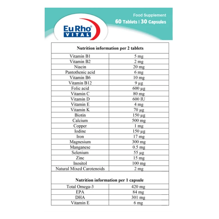 این مکمل حاوی اسیدهای چرب امگا 3 و ید است. اسیدهای چرب امگا 3 بهویژه DHA به منظور رشد سیستم عصبی و بینایی جنین ضروری هستند. بعلاوه دریافت میزان کافی ید در دوران بارداری با ضریب هوشی بالاتر جنین همراه است. کمبود خفیف ید در بارداری نقص توجه در نوزاد را به دنبال داشته و در موارد شدیدتر، سبب سقط جنین، زایمان زودرس، تولد نوزاد مرده، اختلال در رشد مغزی، تولد نوزاد با عقب ماندگی ذهنی و جسمی میشود.